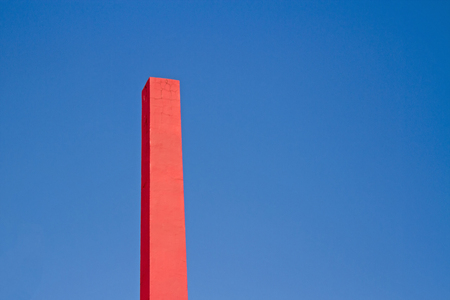 Pink rectangular chimney with blue sky