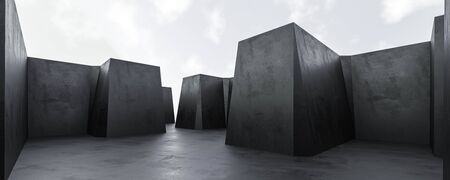 Abstract architectural concrete design against the sky in daylight 3d rendering illustration. modern futuristic structure