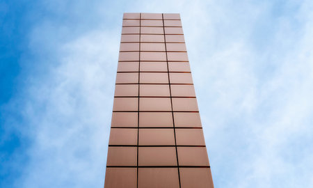 tall modern building tower against the blue sky and clouds architectural background