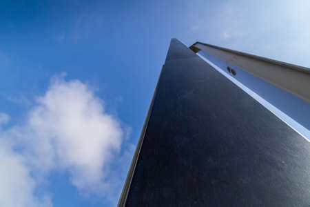 Architectural Detail of steel metal a modern geometry with blue sky background