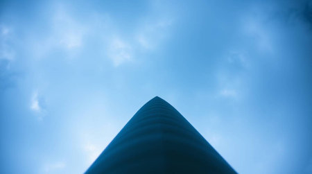 A Shiny metal cone against sky.