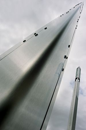 A long steel and iron tip going to vanishing point at the horizon on a sky background