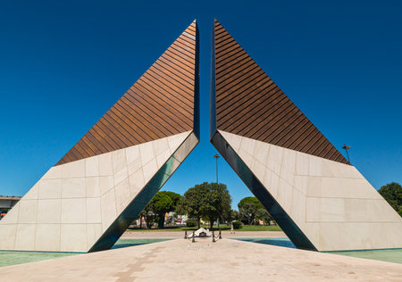 Lisbon, Portugal, October 19 2018: The Monument to the Overseas Combatants at the western edge of Belem in Lisbon Portugal. It is deticated to soldiers of the Portuguese army who died during the Overseas War of 1961 to 1974