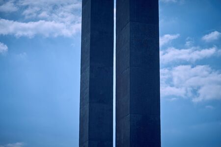 Abu Dhabi, United Arab Emirates - Oct.26, 2018: Wahat Al Karama - war memorial and monument in Abu Dhabi. Leaning Pillars. Panorama