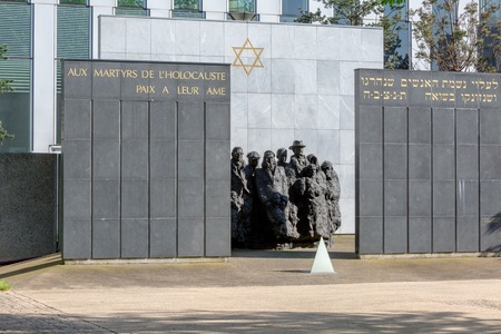 PUTEAUX, FRANCE - MAY 10, 2015: memorial of the martyrs of the Holocaust in Puteaux on which it is writing in French and Hebrew language (to the martyrs of the Holocaust, peace to Their Souls)