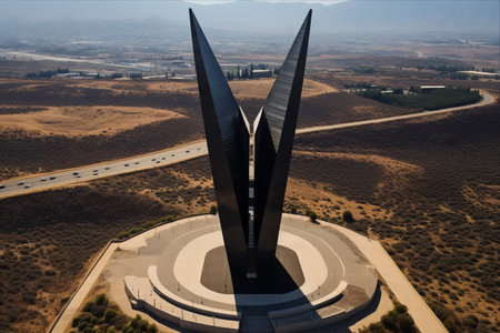 The Enigmatic Beauty of the Black Arrow Monument: A Captivating Aerial View from Mefalsim, Israel