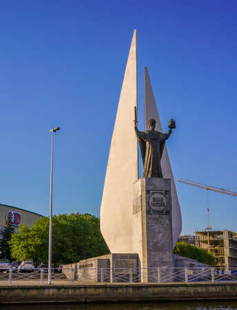 Kaliningrad, Russia - May 11, 2016: Urban landscape with architecture and attractions. Monument To Nicholas The Wonderworker.