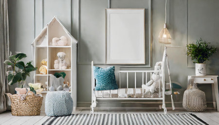 Transform your nursery into a charming haven with this cute baby room interior, complete with a crib and adorable decor elements. Perfect for parents to be