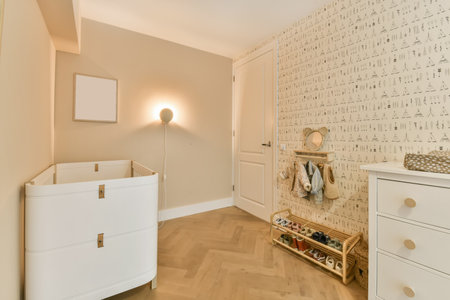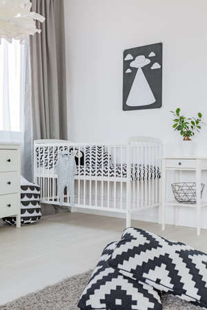 Stylish baby's room with crib. Interior design