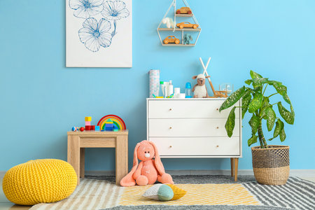 Interior of modern children's room with toys