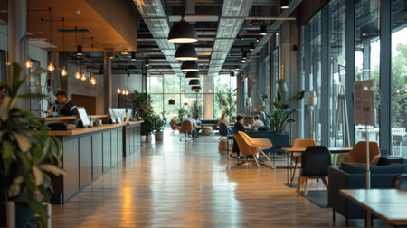 A modern coworking space bustling with activity, catering to the dynamic needs of contemporary business professionals.