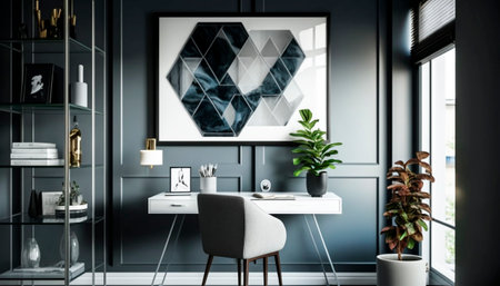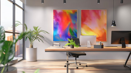 Vibrant home office paintings, murals and inspiring colors., generative AI
