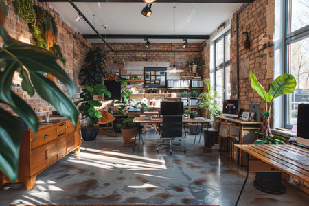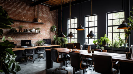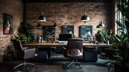 Inspiring office interior design Industrial style Corporate Office featuring Exposed brick wall architecture. Generative AI AIG 31.