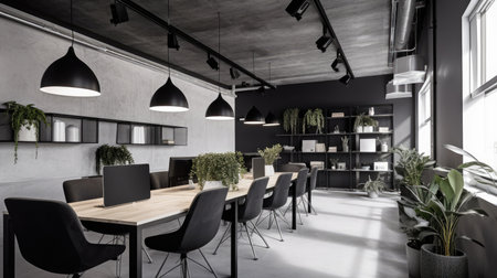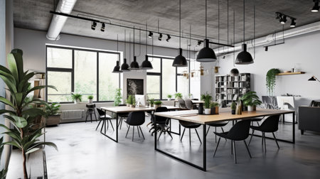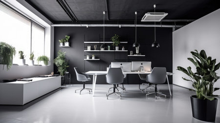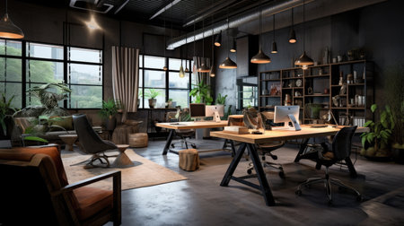 Modern design office interior concept architecture industrial loft. Generative AI AIG18.