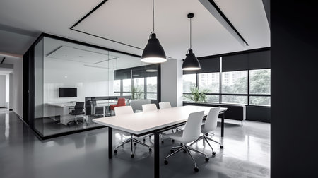 The interior of a modern office meeting room exudes a sense of professionalism and sophistication.