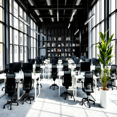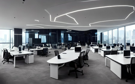 Modern office workplace with desks and computers