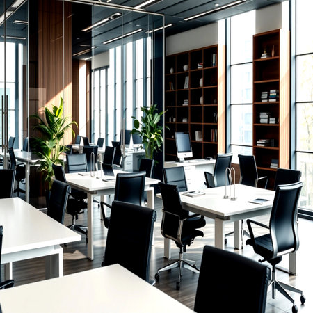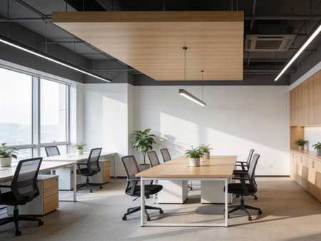 Minimalist corporate workspace with modern details.