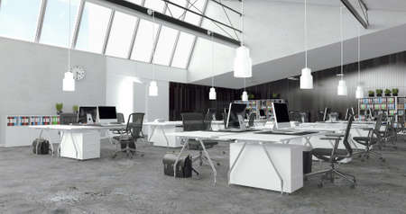 Modern office interior with computers and equipment. 3d rendering mock up