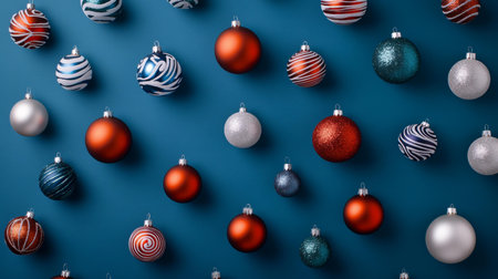 An artistic arrangement of various holiday ornaments in different styles and colors resting on a soft background, perfect for seasonal decoration inspiration and festive themes.