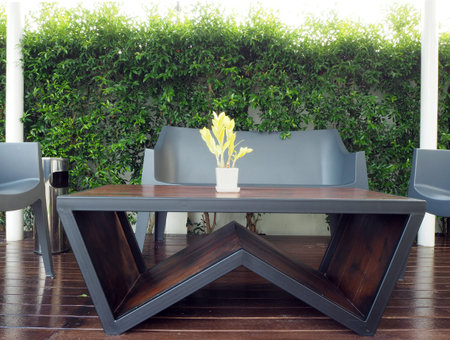 home terrace beside garden with stylish table