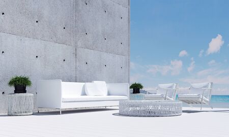 Outdoor minimal lounge living and sea view