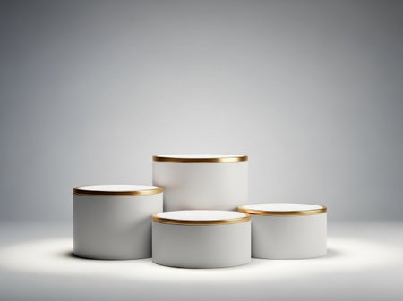 mockup white cylinder display with multiple eg background 3d illustration