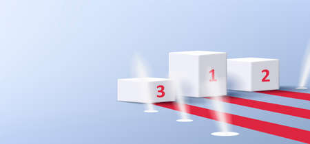 Award winning podium with first second and third places steps and red carpet with spotlights