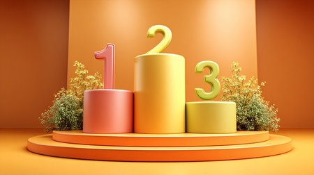 A white podium with three steps labeled with numbers 1, 2, and 3, representing first, second, and third places.