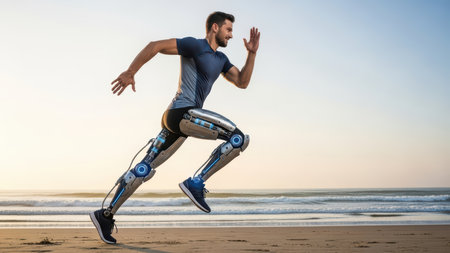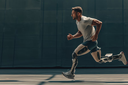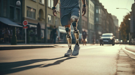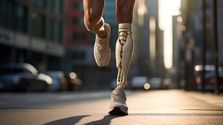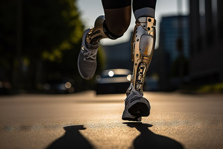 Generative AI, person with disability, prosthetic limb running and does not feel obstacles,