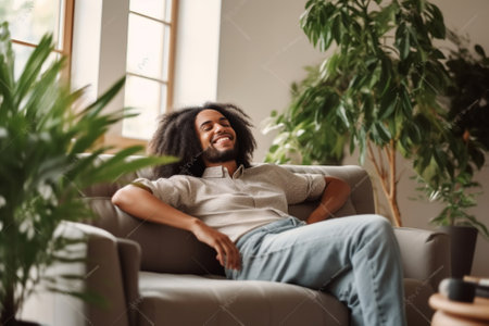 Enjoying a Moment of Relaxation on a Cozy Sofa in a Bright Living Room
