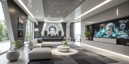AI-driven music studio in chrome silver, with smart sound systems that automatically adjust audio quality based on the artists preferences.