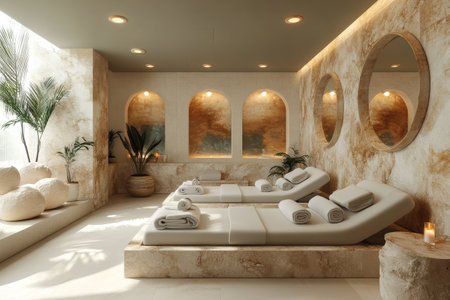 Serene luxury spa space with elegant decor and natural light