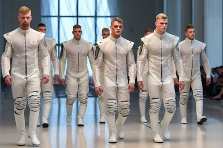 Handsome men with muscular bodies on the catwalk made with generative AI