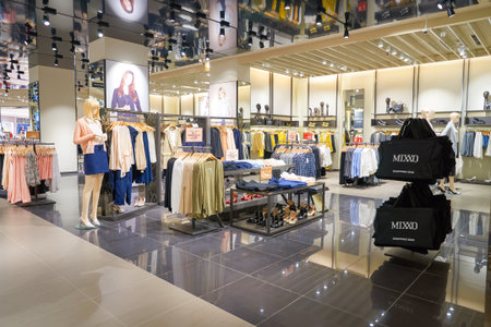 MOSCOW, RUSSIA - SEPTEMBER 14, 2019: interior shot of Reserved store in Salaris shopping mall in Moscow.
