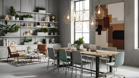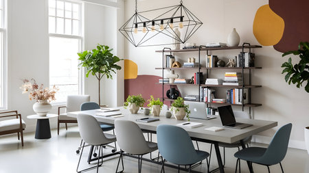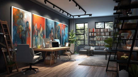 Inspiring office interior design Contemporary style Studio space featuring Artistic decor architecture. Generative AI AIG 31.