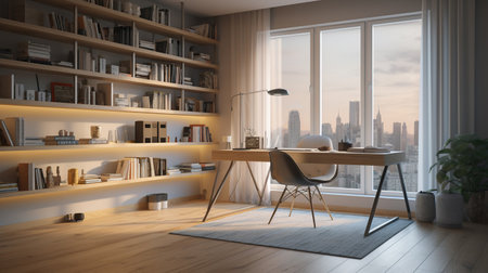 a minimalist space with plenty of natural light and a sleek desk for studying, created with generative ai
