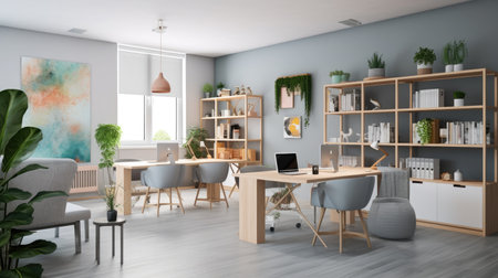 Inspiring office interior design Scandinavian style Corporate Office featuring Natural elements architecture. Generative AI AIG 31.