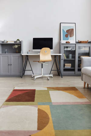 Vertical background image of minimal interior with focus on modern home workplace, copy space