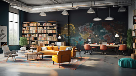 creative space with unconventional furniture, bold colors and unique accents, created with generative ai