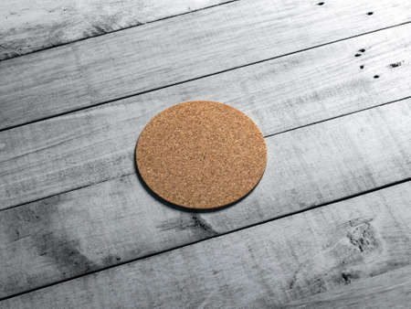 Round Cork pad, beer coaster Mockup on the white wooden table