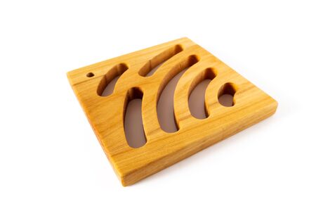 wooden food stand isolated on white background. Kitchen inventory. Board for hot.
