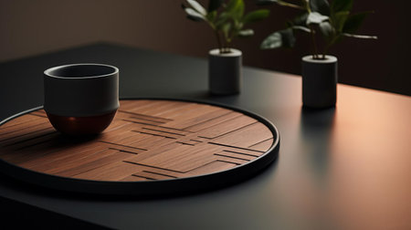 wooden hand made craft decorative object on black textured surface background wallpaper empty copy space simple template