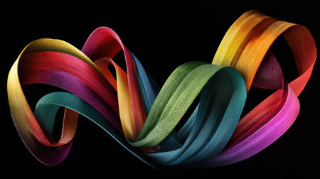 Colorful ribbons twist and flow in a mesmerizing display, symbolizing strength, wellness, and the interconnectedness of body and mind in abstract form.