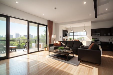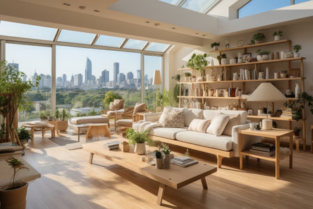 Modern apartment in the center with urban view, generative AI