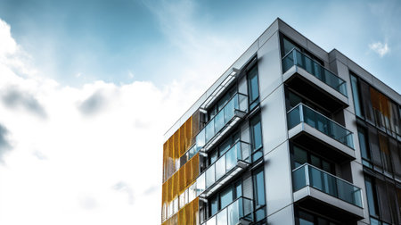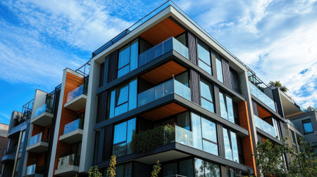 Explore a modern apartment block featuring expansive balconies and a sleek design. This residential building embodies contemporary architecture in an urban setting.
