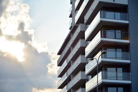 Modern apartment building exterior concept. Mortgage