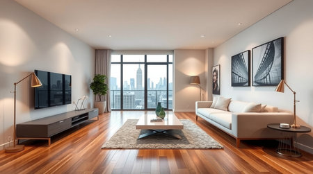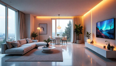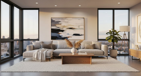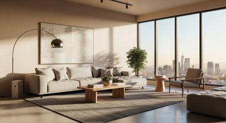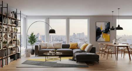 Luxury apartment interior with city view and stylish design