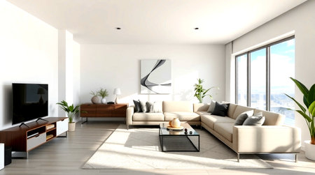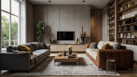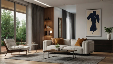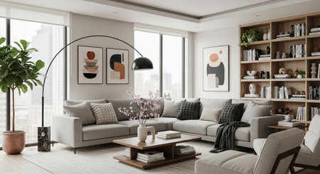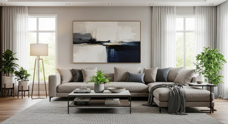 Modern living room interior design with neutral color palette
