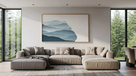 Modern living room interior with a picture on the wall. 3d rendering mock up