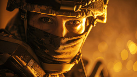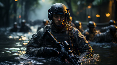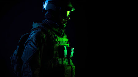 The close up picture of the military officer is working on the operation in the warfare or battlefield, the military require skill like endurance, training, physical strength and combat skill. AIG43.